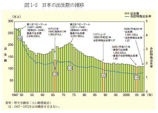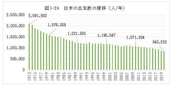 図1—2 は2008年までなので、2020年までの出生数を図1—2Aで補いました。